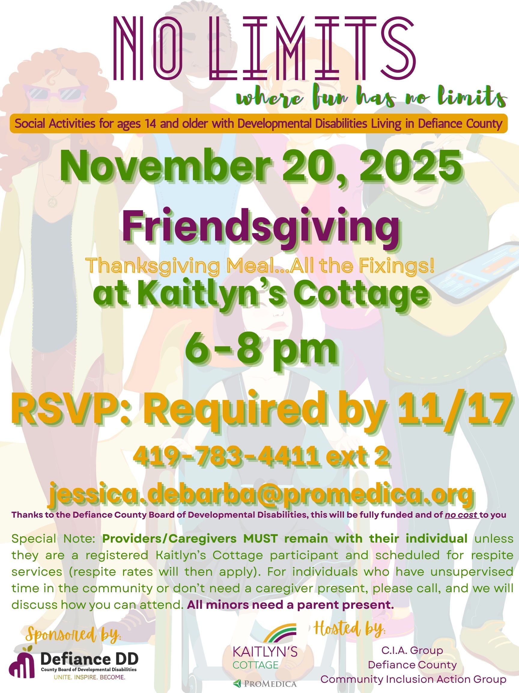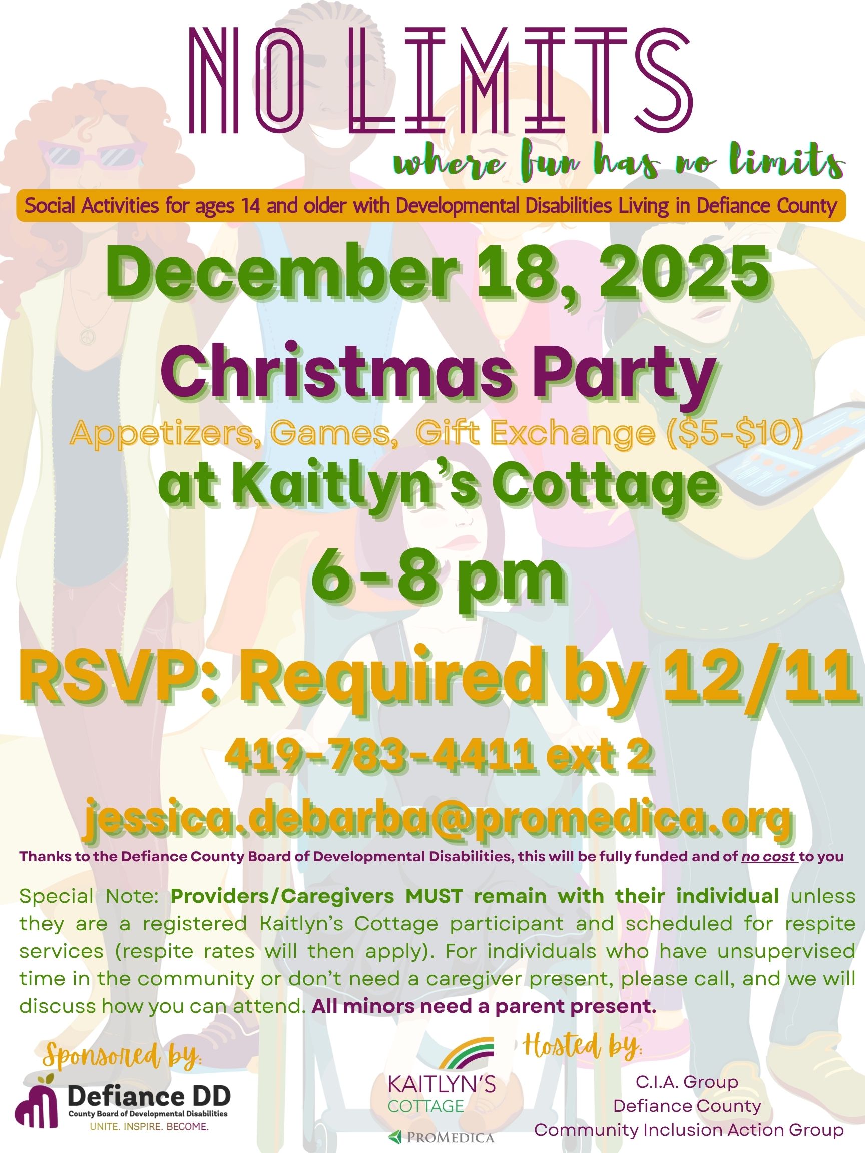 In conjunction with Kaitlyn’s Cottage, the Defiance Board of DD provides recreational programming up to twice per month. These activities are provided at either the Cottage or other places in the community, and include a range of options such as baking, movie night, karaoke, and bingo. Recreation nights are usually the second and fourth Tuesday of each month, from 6 pm to 8 pm, and are either free or at a reduced cost. To ensure available space, RSVPs are requested for each event. To reserve a spot or for more information, please contact Jessica DeBarba at (419) 783-4411 or jessica.debarba@promedica.org. Current information is also posted on the Defiance County Board of DD and Kaitlyn’s Cottage Facebook pages.