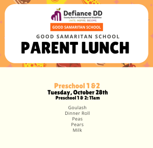Good Samaritan School: Parent Lunch: Preschool 1 and Preschool 2 October 28, 2025 - 11:00 am Defiance