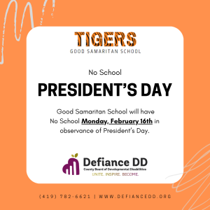 Presidents Day: DCBDD and Good Samaritan School Closed
