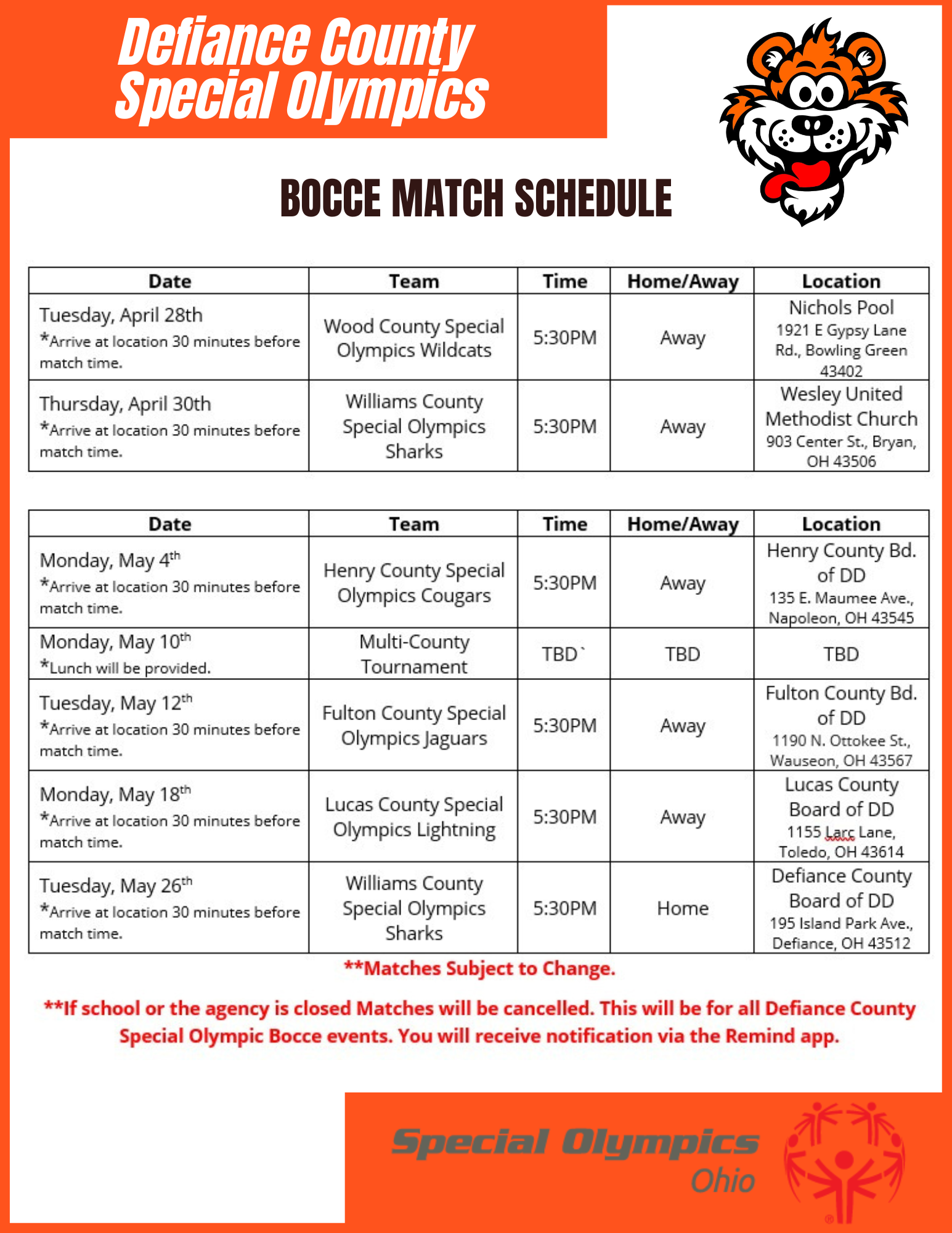 Special Olympics Defiance County is a non-profit 501(c)3 corporation funded through private and corporate donations and fundraising projects. In addition to monetary contributions, Special Olympics also accepts a variety of in-kind donations of goods and services. Special Olympics is not a United Way agency and does not receive any federal funds. Donations to Special Olympics are carefully managed so that the athletes benefit the most from the program. Nearly 99 percent of funds raised go directly towards programs and services for the Special Olympic athletes. Generally donations are tax deductible. For more information on how to donate locally, please contact the Special Olympics Coordinator.
