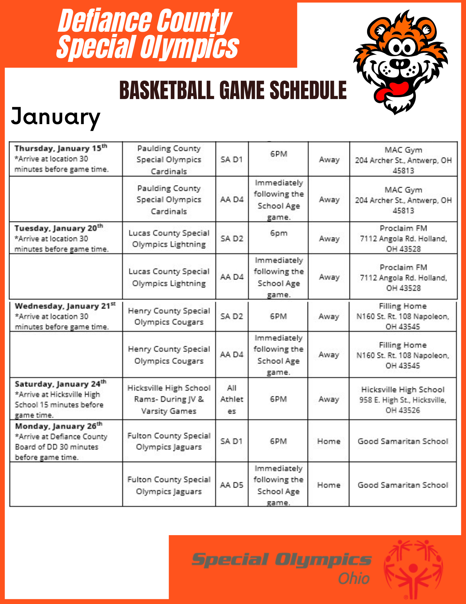 Defiance County Special Olympics Brochure