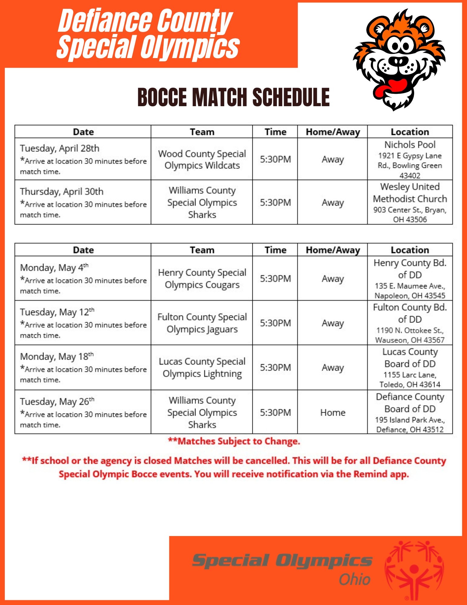 Special Olympics Defiance County is a non-profit 501(c)3 corporation funded through private and corporate donations and fundraising projects. In addition to monetary contributions, Special Olympics also accepts a variety of in-kind donations of goods and services. Special Olympics is not a United Way agency and does not receive any federal funds. Donations to Special Olympics are carefully managed so that the athletes benefit the most from the program. Nearly 99 percent of funds raised go directly towards programs and services for the Special Olympic athletes. Generally donations are tax deductible. For more information on how to donate locally, please contact the Special Olympics Coordinator.